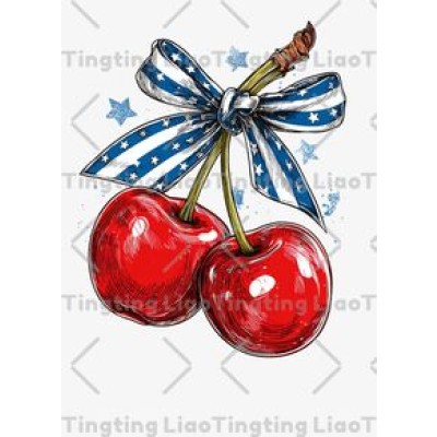 Independence Day,Flag Elements,Cherry Illustration,Retro Hand Painting,Sweet And Exquisite,Decoration,Fruit Art