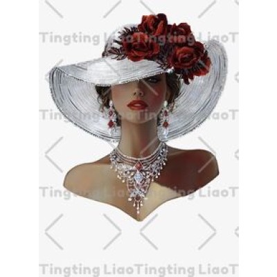 White Wide-ranging Hats,Red Roses,Elegant Women,Diamonds,Noble Fashion