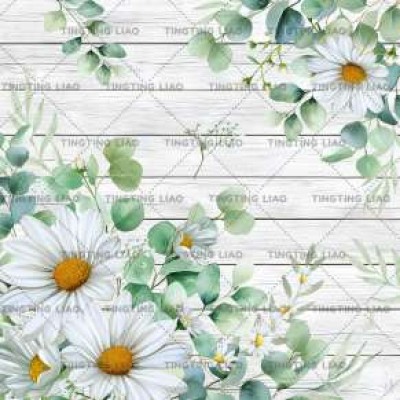 Summer,Eucalyptus Leaves,Flowers,Daisy,Farmhouses,Countryside,Vintage,White Woodcut