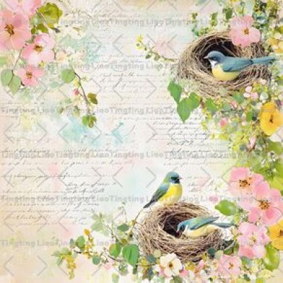 Vintage,Flower,Bird,Nest,Watercolor,Texture