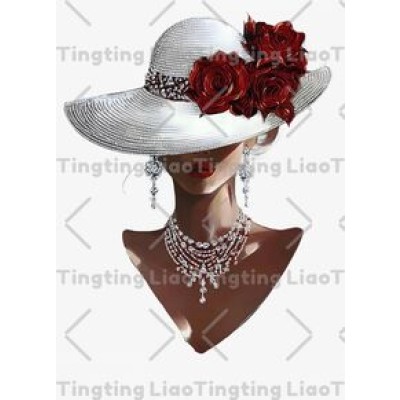 White Wide-ranging Hats,Red Roses,Elegant Women,Diamonds,Noble Fashion