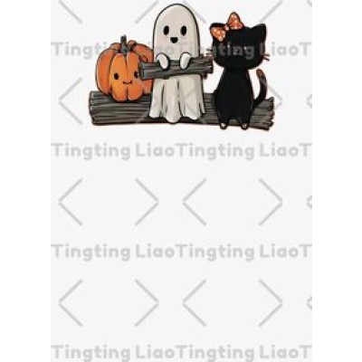 Cartoon,Halloween,Black Cat,Ghost,Pumpkin,Bow