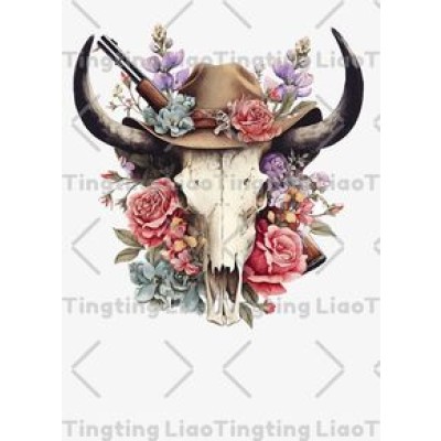 Cow Skulls,Cowboys,Western Style,Hunting Guns,Floral