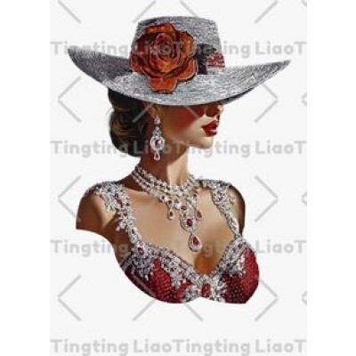 White Wide-ranging Hats,Red Roses,Elegant Women,Diamonds,Noble Fashion