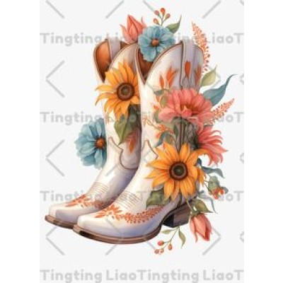 Cowboy Boots,Flowers,Illustrations,Art,Fields