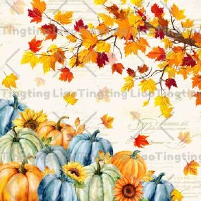 Autumn,Thanksgiving,Blue Orange Green Pumpkin,Sunflower,Maple Leaf,Vintage,Farm,Farmhouse