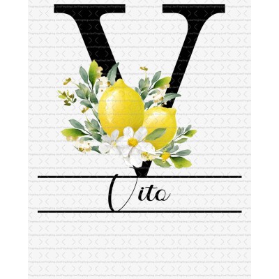 Letter Custom V,Vintage,Country,Fruit,Lemon,Pastoral