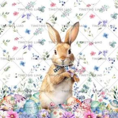 Easter,Rabbits,Flowers,Butterflies,Spring,Text,Leaves,Watercolor,Sackcloth