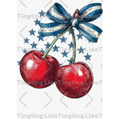 Independence Day,Flag Elements,Cherry Illustration,Retro Hand Painting,Sweet And Exquisite,Decoration,Fruit Art