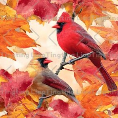 Male Female Tits,Cardinals,Leaves,Autumn,Thanksgiving,Red Bird,Nature