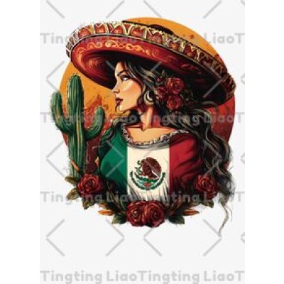 Mexico,Wide-brimmed Hat,Flag,Cactus,Flowers,Culture