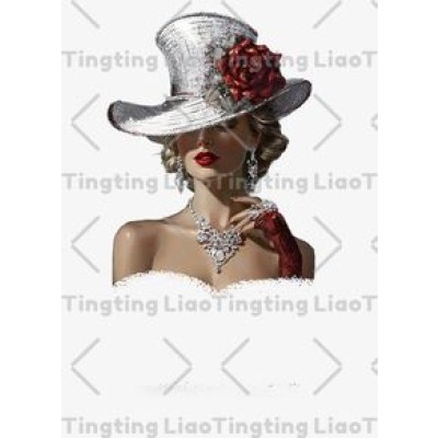 White Wide-ranging Hats,Red Roses,Elegant Women,Diamonds,Noble Fashion