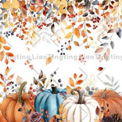 Thanksgiving,Autumn,Pumpkin,Eucalyptus Leaves,Watercolor,Vintage,Linen