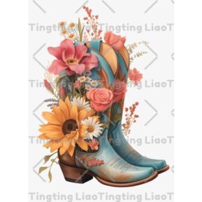 Cowboy Boots,Flowers,Illustrations,Art,Fields
