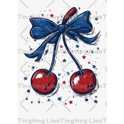 Independence Day,Flag Elements,Cherry Illustration,Retro Hand Painting,Sweet And Exquisite,Decoration,Fruit Art