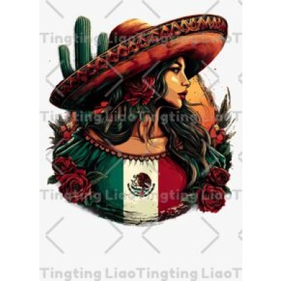 Mexico,Wide-brimmed Hat,Flag,Cactus,Flowers,Culture