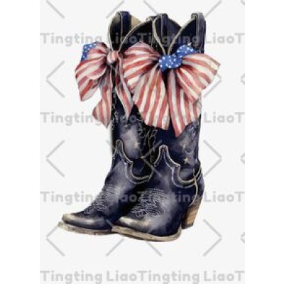 Independence Day,Cowboy Boots,American Flag Bow,Western Style,American Culture