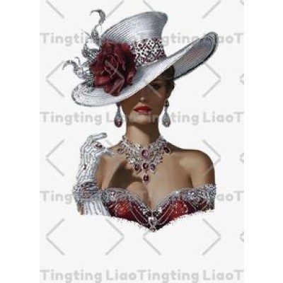 White Wide-ranging Hats,Red Roses,Elegant Women,Diamonds,Noble Fashion