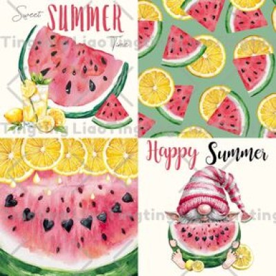 Summer,Watermelon,Lemon,Gnome,Watercolor,Retro,Art,Gradient,Decoration,Country