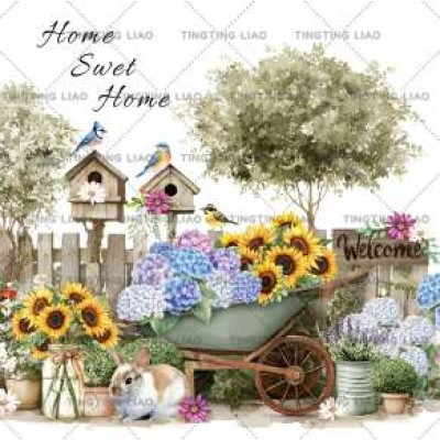 Spring,Farmhouses,Embroidery Flowers,Sunflowers,Daisy,Rabbits,Birds,Text