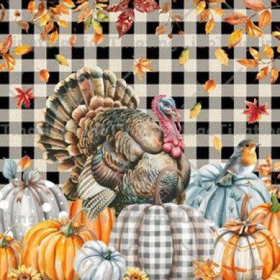 Thanksgiving,Autumn,Leaves,Pumpkin,Turkey,Plaid