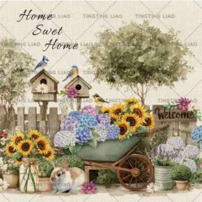 Spring,Farmhouses,Embroidered Flowers,Sunflowers,Daisy,Rabbits,Birds,Text,Jam