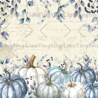 Thanksgiving,Autumn,Blue Leaves,Blue Pumpkin,White Pumpkin,Plant,Vintage Letter Background