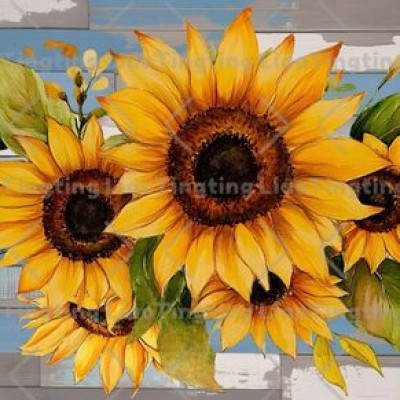Sunflower,Watercolor,Farmhouse,Vintage,Hand-painted,Flowers,Wood Grain