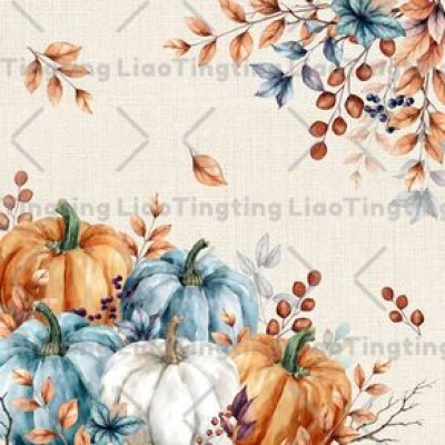 Thanksgiving,Autumn,Pumpkin,Blue Orange White,Vintage,Linen Bottom,Farm,Country