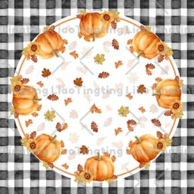 Autumn,Thanksgiving,Orange Pumpkin,Farm,Farmhouse,Country,Maple Leaf,Black And White Plaid