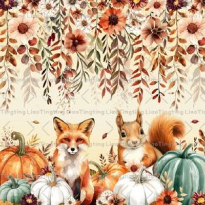 Thanksgiving,Autumn,Leaves,Flowers,Farmhouse,Pumpkin,Squirrel,Fox