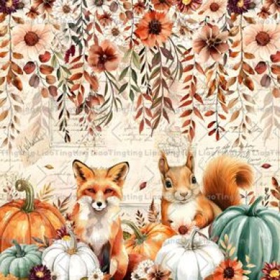 Thanksgiving,Autumn,Leaves,Flowers,Farmhouse,Pumpkin,Squirrel,Fox