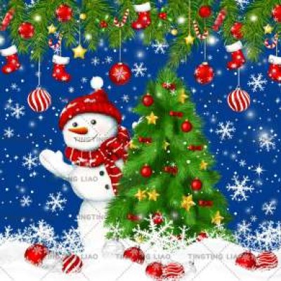 Winter,Christmas Tree,Snowman,Christmas Ball,Snowflake,Blue