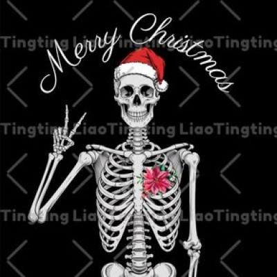 Christmas,Skull,Poinsettia,Flower,Decoration,Art,Retro,Country