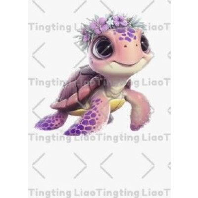 Small Sea Turtles,Purple Wreaths,Cute Style,Watercolor Wind