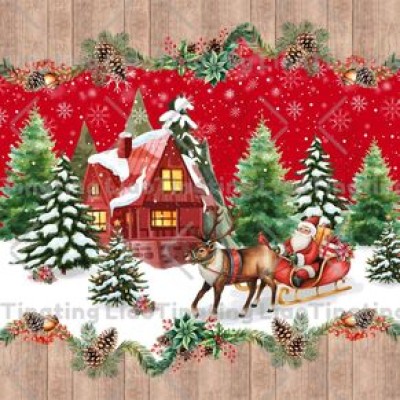 Christmas,Santa Claus,Sled,Reindeer,Cottage,Forest,Christmas Tree,Winter,Snowflakes,Plants,Woodcuts,Red