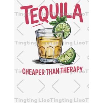 Tequila,Lime,Mint,Glass,Text "CHEAPER THAN THERAPY," Cocktail,Casual