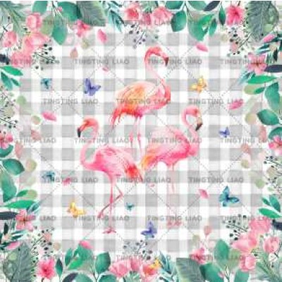 Summer,Animals,Flaming Birds,Butterflies,Plants,Leaves,Flowers,Grey Patterns
