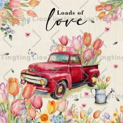 Spring,Easter,Flowers,Stripes,Mother's Day,Tulip Trucks,Red