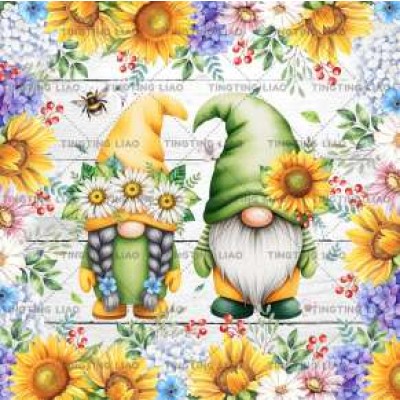 Spring,Dwarfs,Flowers,Sunflowers,Embroidered Balls,Daisy,Berries,Bees,Leaves,Woodcuts