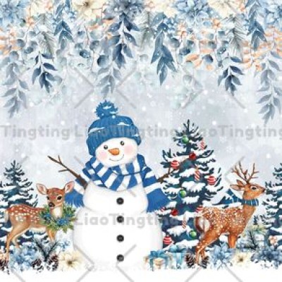 Christmas,Winter,Snowman,Eucalyptus Leaves,Poinsettia,Elk,Christmas Tree,Blue Wood Grain