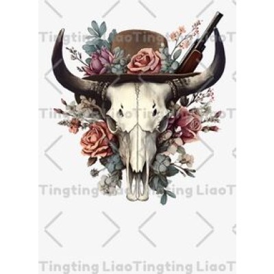 Cow Skulls,Cowboys,Western Style,Hunting Guns,Floral