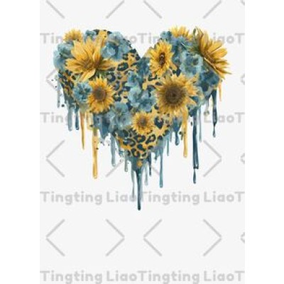 Sunflower,Heart-shaped,Splash Ink Effect,Fashion