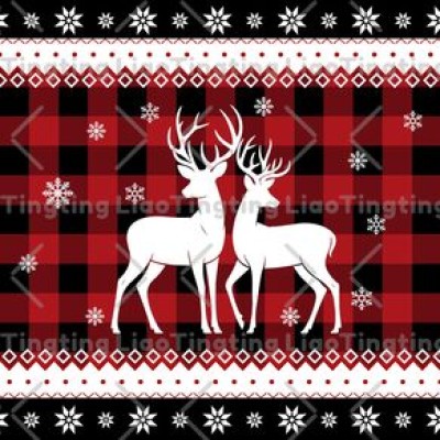 Christmas,Winter,Snowflakes,Elk,Vintage,Red Patches