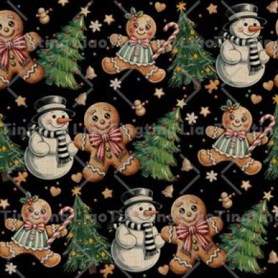 Christmas,Winter,Ginger-cake People,Snowflakes,Watercolors,Christmas Tree,Snowman