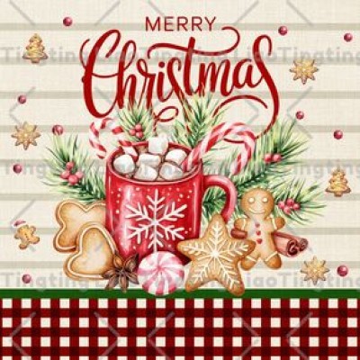 Winter,Christmas,Vintage,Hot Cocoa,Gingerbread Man,Pine Needles,Plaid,Art,Decoration