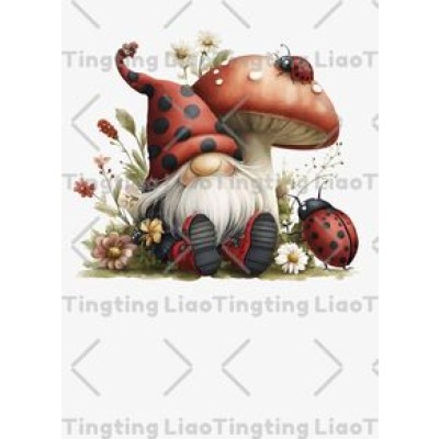 Garden Pigs,Ladybugs,Mushrooms,Flowers,Fairy Tale Style