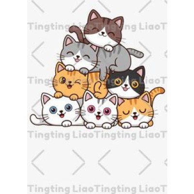 Cute,Cartoon,Expression,Cheerful,Cat,Stack