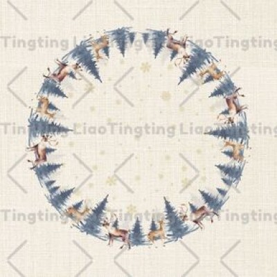 Christmas,Winter,Christmas Tree,Blue,Snowflake,Deer,Elk,Vintage,Linen Sole