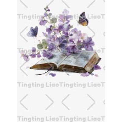 Old Books,Purple Flowers,Watercolor Illustrations,Cures
